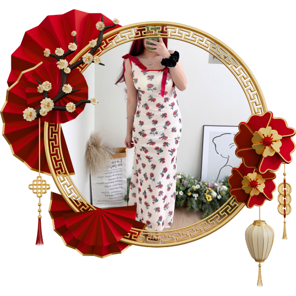 [A6073] 花花吊带连身裙 FLOWER DETAIL DRESS