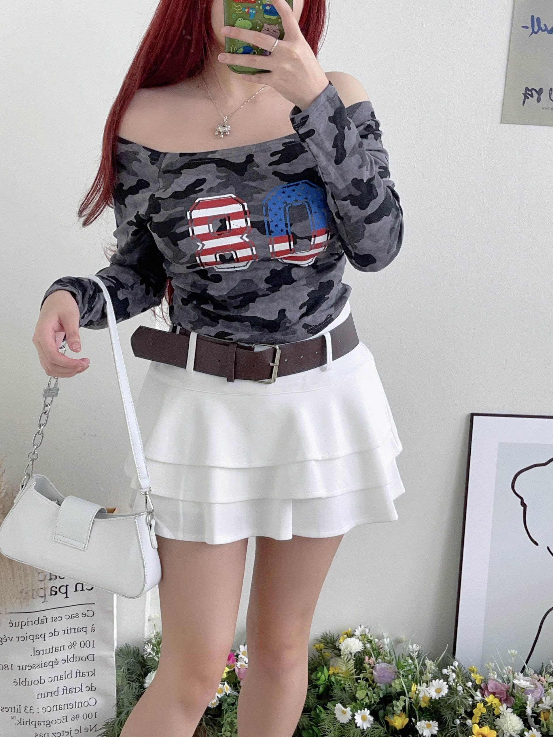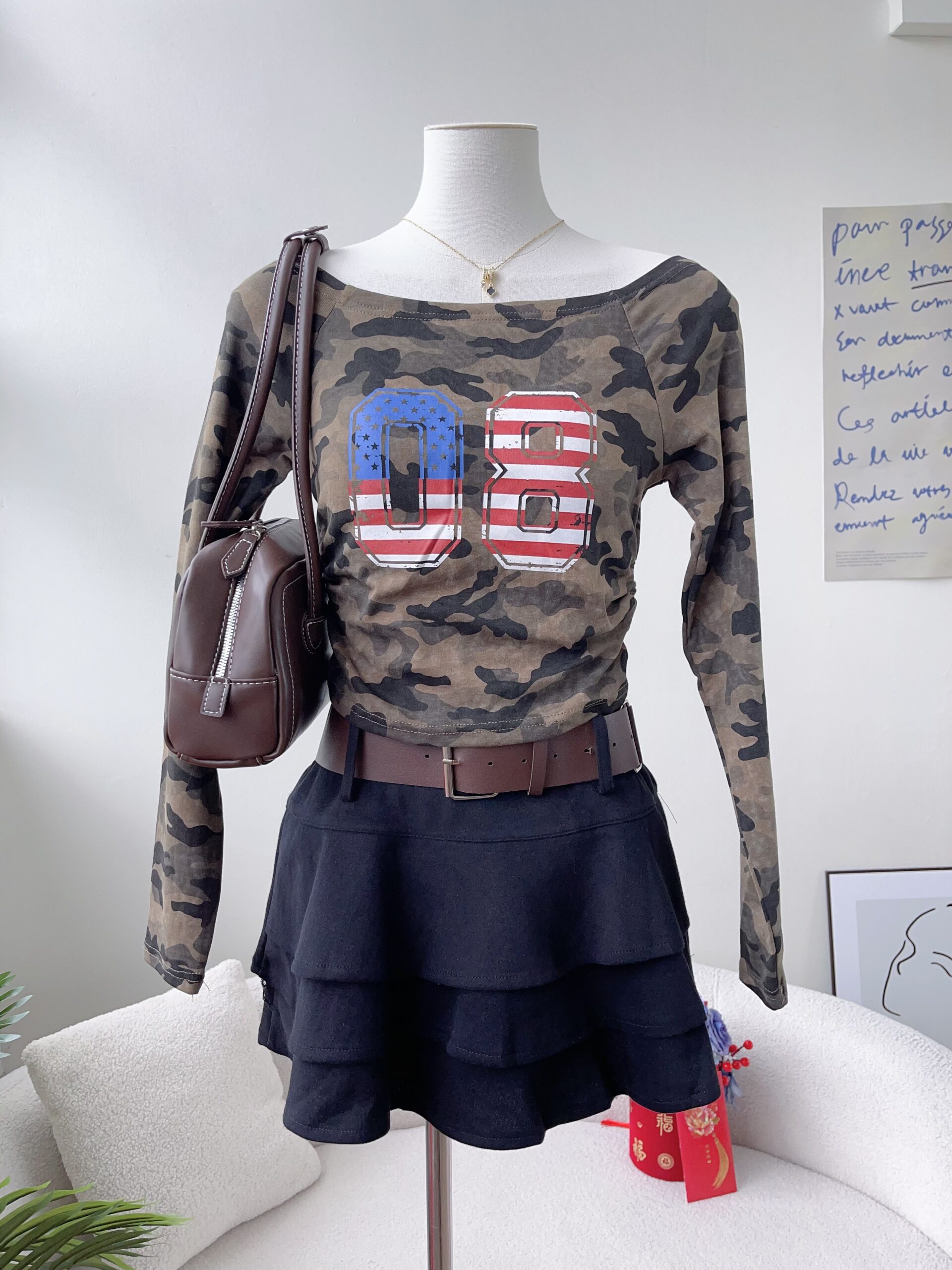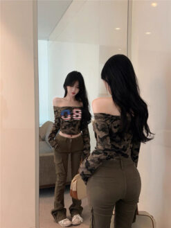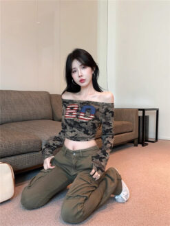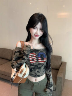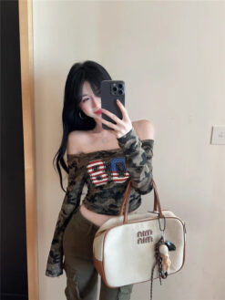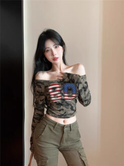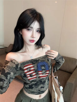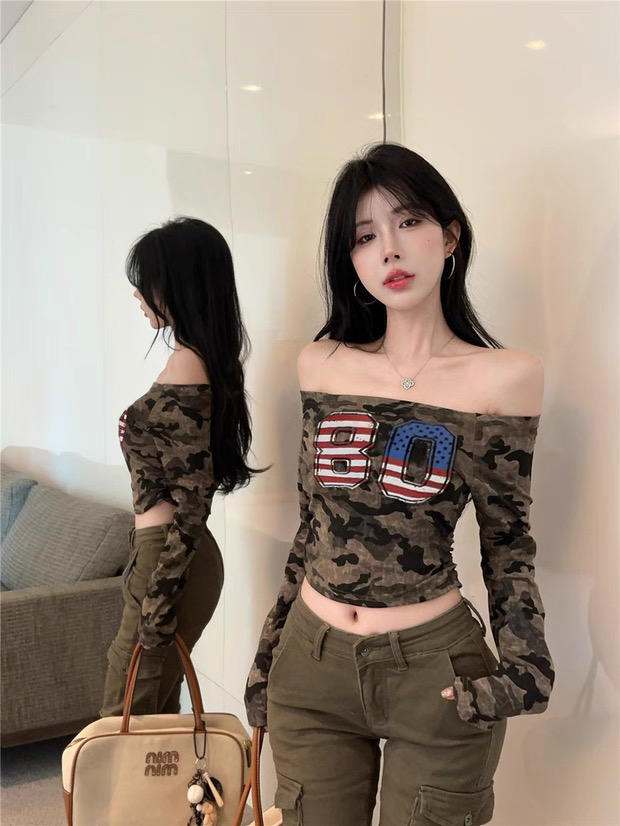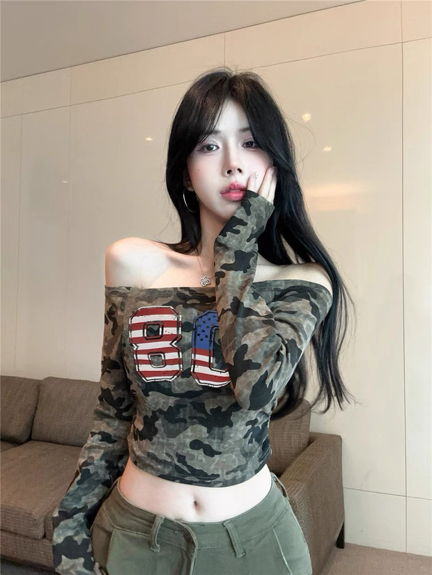[A5444] 美式一字肩上衣 ARMY TOP