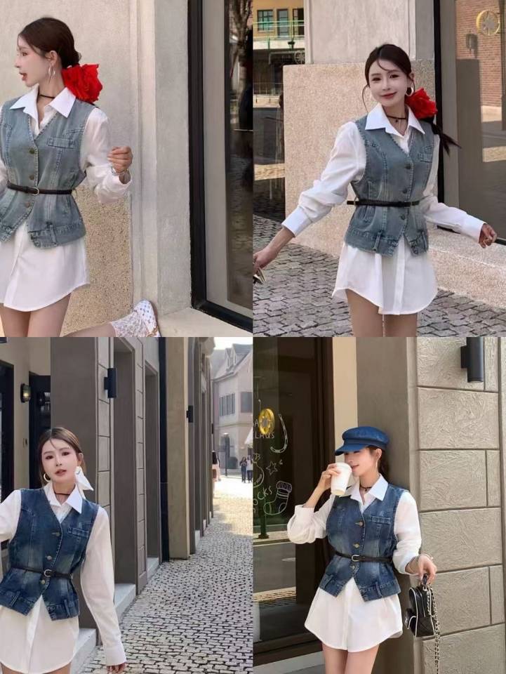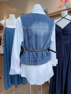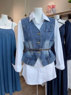 [A6254] DENIM SET BUTTON TOP