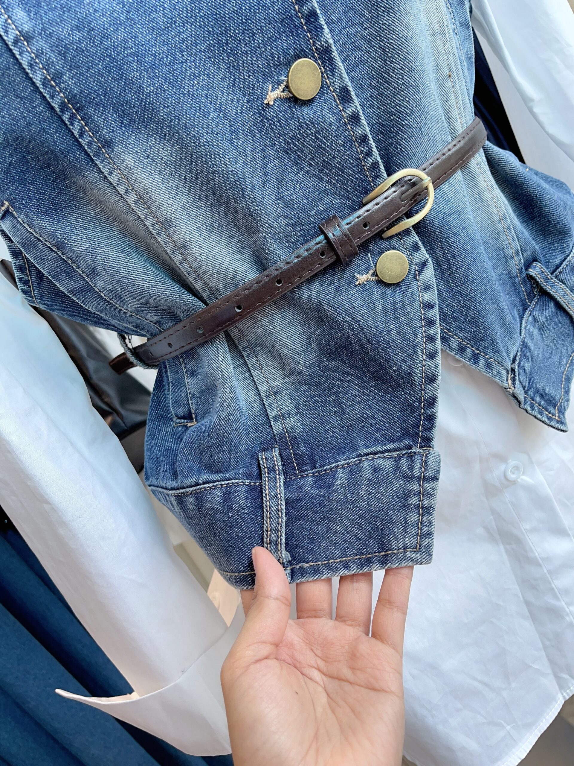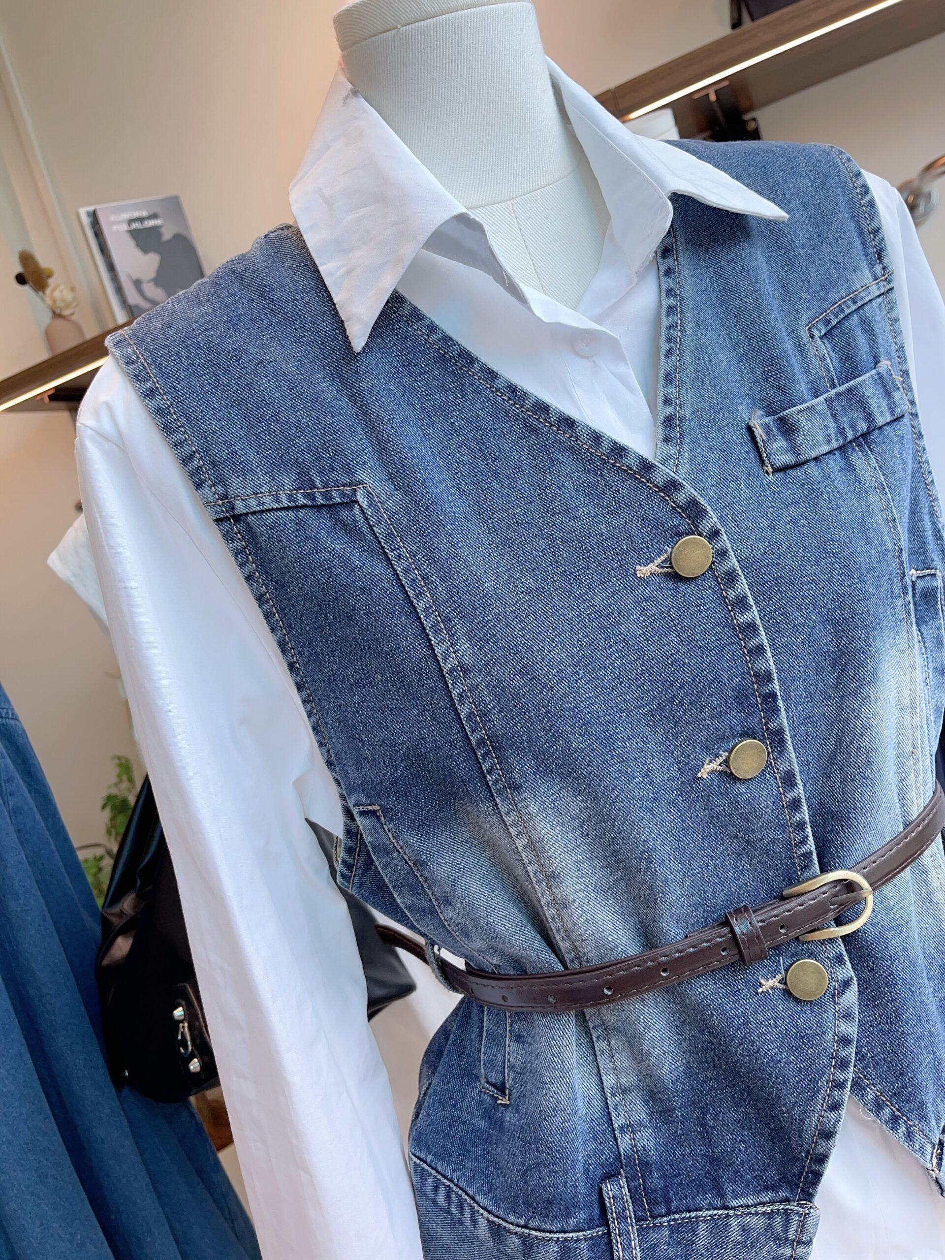 [A6254] DENIM SET BUTTON TOP