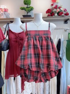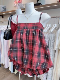 [A6484] 格子吊带套装 PLAID ONE SET